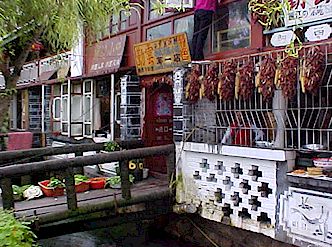After all that shopping, you're bound to be hungry. Want to eat? Here's a restaurant; let's go in and see what they're serving. Do you like snails or pickled eggs?