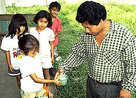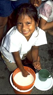 I am serving it to my teacher. Women and girls make and serve chicha during